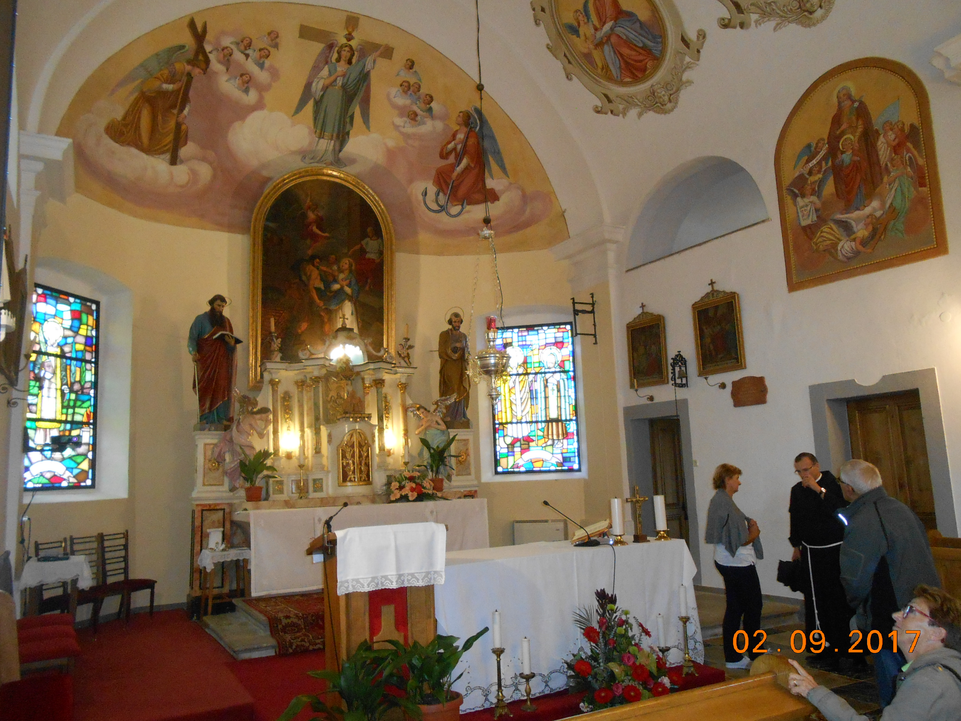 V soboto, 2. septembra 2017, smo se župljani sv. Ožbalta, pod duhovnim vodstvom patra Mateia Sentesa, odpravili na romanje v Brestanico in Olimje. V Brestanici, v Baziliki Lurške Matere Božje, imenovani tudi Slovenski Lurd, smo imeli sv. mašo. Kdor je želel je lahko tudi pristopil k zakramentu svete spovedi. Pri Evharistični daritvi smo pred Božjo Marijo položili svoje misli, želje, zahvale in težave ter jo prosili za usmiljenje, pomoč in spremstvo v vsakdanjem življenju. Duhovno okrepljeni in notranje obogateni smo se odpravili na Bizeljsko, v cerkev Svetega Lovrenca, kjer je svoje pastoralno delo kot kaplan, začel Blaženi Anton Martin Slomšek. Globoko in z vsem spoštovanjem smo se poklonili njegovim relikvijam. Ogledali smo si tudi njegovo spominsko sobo, kjer je prikazana veličina njegovega življenja in delovanja na duhovnem, verskem ter kulturnem področju. Po ogledu spominske sobe smo se odpravili v Minoritski samostan v Olimje. V župnijski cerkvi Marijinega vnebovzetja, ki jo krasijo baročni črno-zlati oltarji, smo imeli molitveno uro. Pred vrnitvijo domov smo se še sprehodili po samostanskem zeliščnem vrtu, obiskali starodavno lekarno, nakupili nekaj domačih zdravil in se posladkali v bližnji v Čokoladnici.